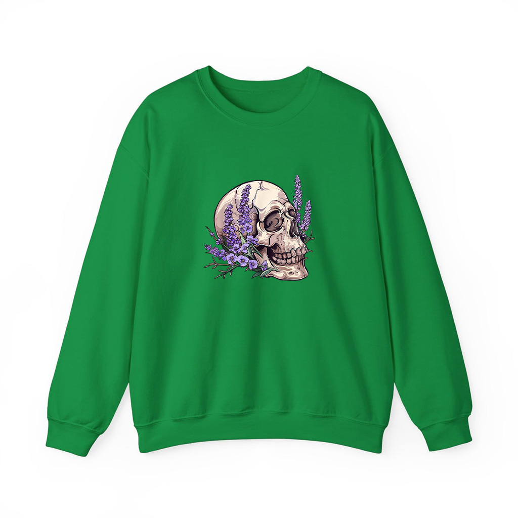 Home Sweatshirts Vintage Skull Purple Lavender Flower Cottagecore Fairycore Sweatshirts